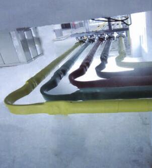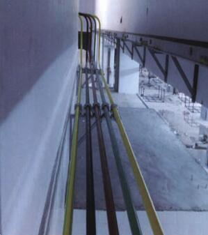 管形母線應用的另一種常見方式,母線可以經過地下電纜溝或者電纜夾層和開關柜連接,也可用于開關柜之間的連接。管形母線采用全絕緣型,特別適合布線困難的場合